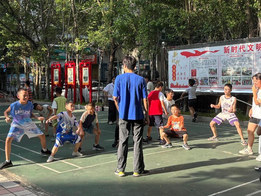 为巩固动作要领并提升学习乐趣,课堂巧妙融入了“木头人”互动游戏环节。在宽敞安全的排球场上,伴随着铿锵的鼓点节奏,学员们化身“小狮子”,通过游戏化的指令反复练习、强化步伐转换与团队默契。最终,学员们协作完成了蕴含深厚礼仪文化的“三拜狮”传统套路初体验。从零基础到初步掌握基本技巧,学员们在汗水与欢笑中,不仅感受到南狮威猛灵动、刚柔并济的神韵,更在实践中深刻体会到协作、信任与集体荣誉感的重要性,对广府文化产生了强烈的认同与自豪。