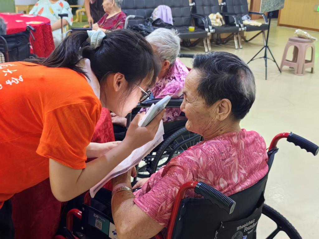 待互动氛围融洽后,志愿者结合提前设计的问卷,轻声开展养老院老人需求服务调查与阿尔兹海默症相关认知调研:“爷爷,您平时在这儿除了散步、聊天,还想参加些手工、唱歌之类的活动吗?”“您最近会不会偶尔记不清刚发生的小事呀?比如早上吃了什么,咱们慢慢想,没关系的。”调研过程中,志愿者全程保持温和语速,对老人模糊的表述耐心引导,对涉及健康的敏感问题采用“生活化提问”方式,避免让老人产生心理负担。有位老人在被问及“是否希望有专人陪自己回忆过去的事情”时,眼眶微红:“要是有人能跟我聊聊以前的日子就好了,有时候想跟护工说,又怕他们忙。”这番话也让志愿者更清晰地捕捉到老人对 “记忆陪伴”的特殊需求。